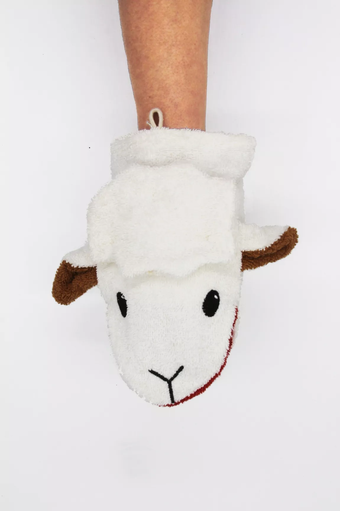 Débarbouillette mouton bio Fürnis en coton certifié GOTS. Douce, ludique et cousue main, elle rend le bain amusant et tout doux. Fabriquée dans l’UE.