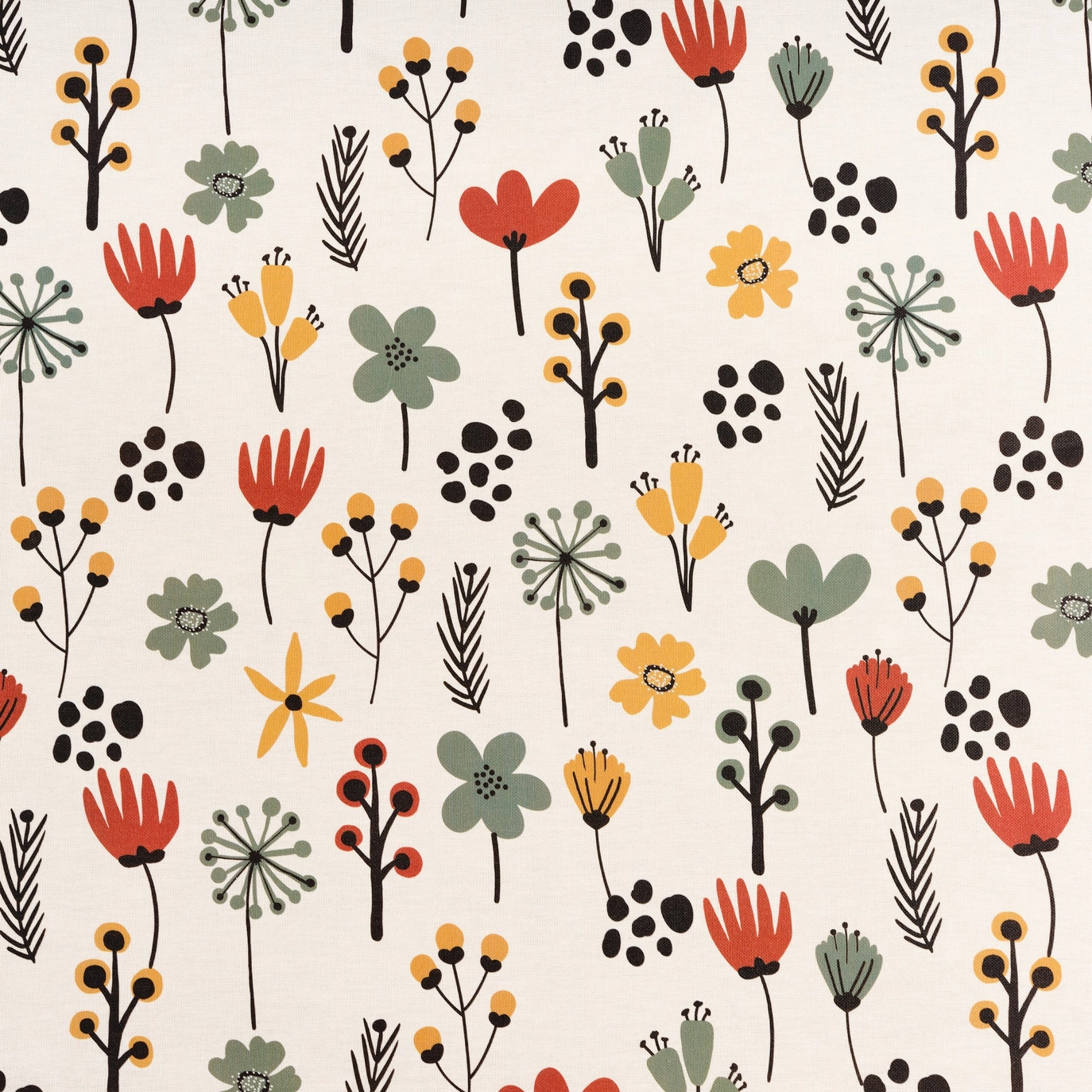 Cette nappe met instantanément de la bonne humeur sur la table : un motif floral joyeux, rétro, plein de couleurs douces et chaleureuses.